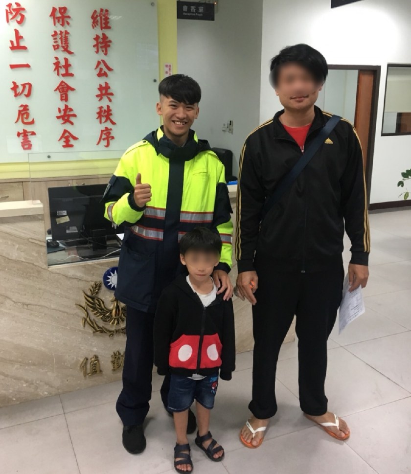 中壢分局大崙派出所警員吳明軒、周永昌於4月6日下午在中壢區環保路652號前,協助走失的6歲兒童李0返回溫暖的家中。