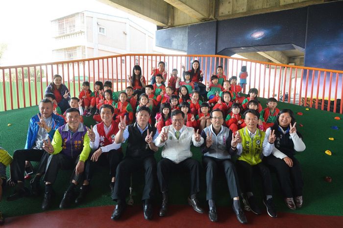 桃園市長鄭文燦(9)日上午前往桃園區國道二號橋下,出席「國道二號橋下空間兒童冒險公園啟用典禮」,鄭市長表示,升格後,市府推動國道二號橋下空間活化政策,目前國道二號橋下桃園及八德段大部分均已完成,其中桃園區國道二號橋下空間活化再利用周邊景觀改造工程為空間活化政策的典範,總經費約3億元;在玉山街以東、往西串連至皮寮溪邊為範圍的橋下空間,建置首座兒童冒險公園,設施包括親子鞦韆、爬竿遊具、極限攀網、瞭望跑道、探險管道、挑戰山丘滑梯、體能挑戰區、活力鬥牛區、3D彩繪等,讓兒童在安全的環境成長,培養體能、團體互動及親子共遊,營造友善的環境,提供市民朋友更多活動空間。