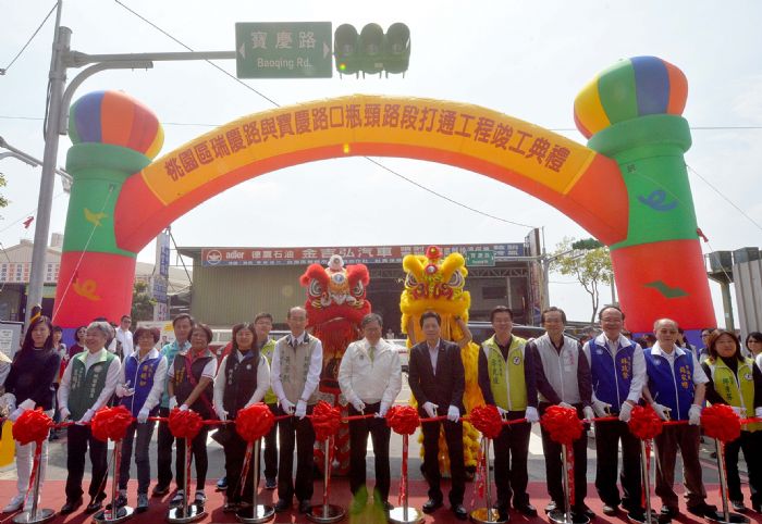 桃園市長鄭文燦今(9)日下午前往桃園區瑞慶路與寶慶路口,出席「瑞慶路與寶慶路口瓶頸路段打通工程完工典禮」,鄭市長表示,本項工程總經費496萬元,其中工程費用僅96萬元,土地徵收費用約400萬元,將瑞慶路從4米拓寬至9米,抒解交通壅塞狀況,這項「小小的工程,帶來大大的方便」,是一項經費少但效益高的工程。