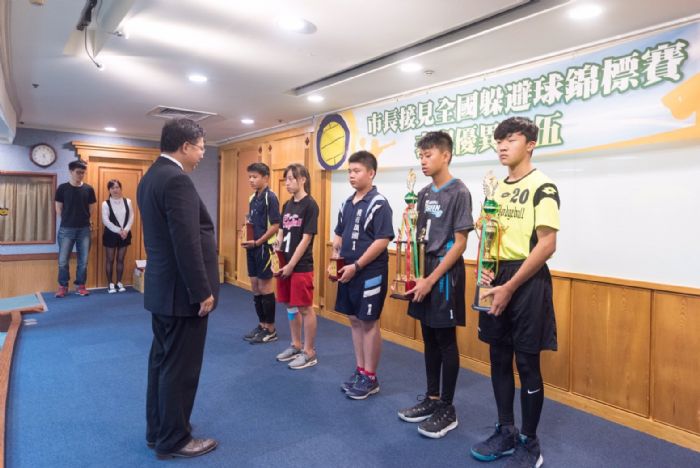 桃園市長鄭文燦11日下午於市府,接見全國躲避球錦標賽表現優異隊伍,鄭市長表示,躲避球運動不僅要有敏捷的身手,也需要團隊合作及戰術運用,桃園包括大園國中、埔心國小、同德國小、潮音國小及圳頭國小等5所學校,分別於不同躲避球競賽中獲獎,相當不容易,期勉所有參加球隊的學生都能持續精進,在求學歷程中留下最美好的回憶。