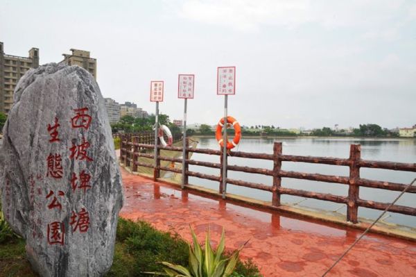 鄭市長指出,西坡埤塘104年及105年推動改善及綠美化工程,種植約8,000棵樹木,總工程經費約3,000萬元,包括水利會編列約2,300萬元,市府編列約750萬元。市府規劃將園區內已拆除占用建物的土地活化,設置管理中心及綠美化,並於和義二街入口處設置天幕廣場,工程總經費約1,600萬元,完工後將更方便居民使用。