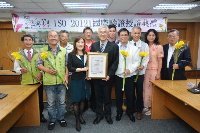 桃園市政府秘書長李憲明13日上午於市府,出席「2018桃園彩色海芋季ISO 20121國際驗證授證典禮」,李秘書長表示,今(107)年於大園區溪海休閒農業區舉辦的「2018桃園彩色海芋季」,順利通過「ISO 20121活動永續性管理系統」驗證,是國內各級政府舉辦的各項活動中獲得該項驗證的首例;未來市府會持續讓休閒農業區符合「生產」、「生活」與「生態」的「三生一體」原則,並透過「桃園市休閒農業4G智慧服務計畫」,引入智慧科技,讓休閒農業區永續發展。