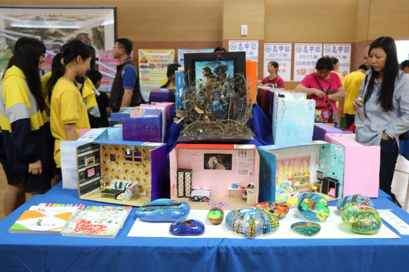 數理組則展示特色科學課程及分組教學的成果,包括光劍、靜電球、特殊生態導覽、百變方塊、熱機引擎、空氣火箭等。美術與多媒體設計組則展出從靜物素描、基礎水彩、帆布彩繪到運用多種媒材表現的作品,內容琳瑯滿目。最特別的是資訊與機器人組,學生在老師指導下,自己編寫相關程式,研究發明出機器手臂、投籃機、坦克、自動化倉庫儲運輸、大象、避障機器人、紙飛機發射器、賽車、射擊器、投石機、航空模擬器、平衡機器人及最夯的夾娃挖機、解魔術方塊除了發表解說之外,作品更在現場展出示範,許多家長都很好奇,還親自體驗,體驗之後無不驚詫連連。