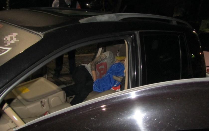 處理員警到場目視車內狀況時,發現呂男倒臥在車內的後座上,且在副駕駛座踏墊上發現有一鍋正在燃燒的木炭,車內煙霧瀰漫,員警大聲拍打窗戶並呼喊皆無回應,員警見情況緊急,立即以警用車窗擊破器強制擊破窗車窗打開車門,車內立即竄出濃濃的木炭燃燒味及白煙,經檢視男子疑似吸入大量的一氧化碳而意識不清,呈現半昏迷狀態,警方立即將車門全開通風,並將木炭鐵盆移置到車外後,該男才慢慢甦醒,隨即協助到場的消防隊將男子緊急送醫,目前已無大礙。