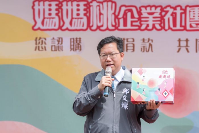 桃園市長鄭文燦(18)日上午在市府前廣場,出席「媽媽桃企業社團認購計畫公益記者會」,鄭市長表示,為推廣桃園媽媽桃,今(107)年特別進行企業預先認購計畫,感謝企業、社團、農會、漁會、工業會、商業會的支持,預計開放認購7,500盒,目標賣出7萬5,000顆,並將提撥3%做為復興區三光國小、高義國小、巴崚國小學生獎助學金。同時,也推出「鮮享媽媽桃」行程,包括泰雅小旅行、溪口吊橋、小烏來天空步道、三民基國派教堂等,讓大家進入原鄉地帶,體驗自然生態的美好。