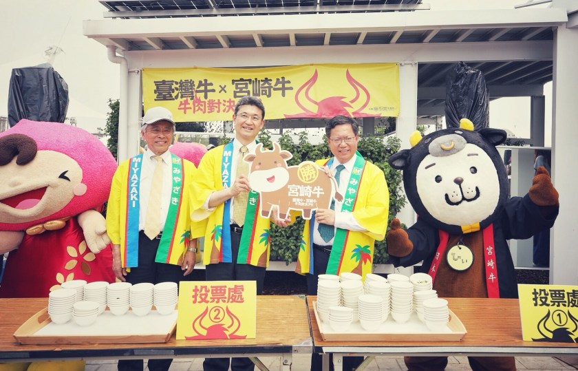 桃園市長鄭文燦22日上午前往農業博覽會國際友好專區,出席「臺灣牛X宮崎牛 牛肉對決」PK活動,鄭市長表示,桃園市與宮崎縣去(106)年10月簽署友好交流協定,雙方展開各種層面上的交流,今日在桃園農博特別舉辦牛肉PK大賽,邀請桃園中壢有名的牛肉麵店「錦家御宴」、「永川牛肉麵」,並結合日本宮崎牛,於今日上下午各舉辦一場品嚐活動;宮崎牛在日本和牛大賽中連續三年奪冠,也在台灣餐飲業掀起一陣熱潮,深受消費者的喜愛,而在國際友好專區的「日式合掌造」,正進行「宮崎縣物產特展」,展售各式物產,讓大家更加認識宮崎,相信遊客們迫不及待。未來雙方也會持續深化各方面的交流,共同分享美好事物。