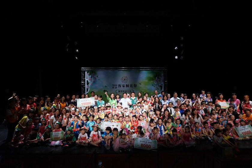桃園市政府客家事務局22日在桃園市客家文化館演藝廳舉辦「桐花唸謠大賽」,是2018桃園客家桐花祭第一場主題活動,吸引國小低年級及幼兒園共37隊約700人參賽,家長師生約1500人共同參與。桃園市客家文化館一早就擠滿了許多精心打扮的客家小桐星,洋溢著躍躍欲試及充滿鬥志的氣氛。
