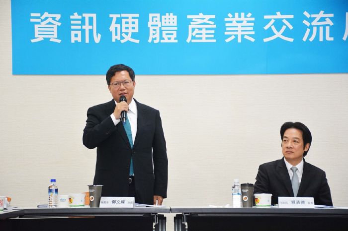 桃園市長鄭文燦24日下午前往台達電桃園研發中心,出席資訊硬體產業座談會,鄭市長表示,桃園是台灣製造業及科技產業重鎮,去(106)年工業產值約2.87兆元,為全國第一,桃園用電占全國總量約14%,約為七分之一,顯示桃園發展和台灣產業發展息息相關。對於桃園產業發展,市府致力減少環境負債,並以綠色生產作為未來推動方向,同時也開發在地型產業園區,並在土地、用水及人才方面協助企業,讓產業能有更好的發展環境。