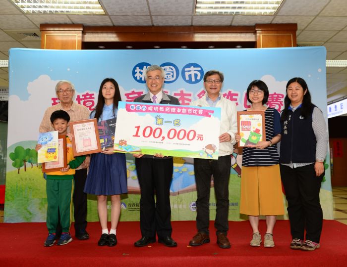 桃園市環保局舉辦「環境教育繪本創作比賽」,獲得熱烈迴響,共有多達200件繪本作品參選,桃園市李憲明秘書長24日頒獎給各組獲獎創作者。典禮上邀請了「萬花筒劇團」,以得獎作品為主題,演出環境行動劇,現場則有繪本賞析和故事說演等活動;本屆得獎作品除在典禮現場公開展覽,也將在桃園各地巡展。李秘書長表示,環教繪本生動有趣,既可促進親子互動,更可傳遞環保知識,歡迎大家多多閱覽。