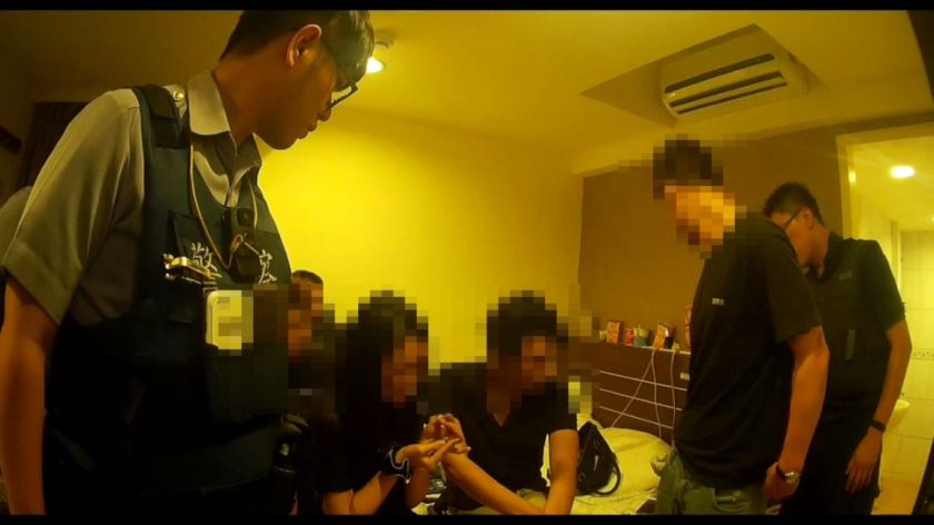 中壢分局青埔派出所於13日晚間21時在中壢區中美路1家旅館執行臨檢時,當場查獲(影片中由右至左)范姜○(男、80年次、工、有毒品、竊盜、傷害等前科)、吳○○(男、78年次、服務業、詐欺前科)、王○○(女、87年次、無業、無前科)、黃○○(男、76年次、商、無前科)、王○○(男、75年次、無業、毒品前科)等5人吸食毒品,現場查扣海洛英毒品共4包(共計4.84公克)、海洛英毒品殘渣袋4只、海洛英香菸1根、安非他命毒品共7包(共計25.93公克)、安非他命毒品殘渣袋6只、安非他命吸食器共2組、電子磅秤2個、夾鍊保鮮袋2入等物品,另又在范姜身上查獲偷來的金飾項鍊3條及戒指1枚,全案訊後將范姜依毒品、竊盜罪嫌;餘4人以毒品罪嫌移送偵辦。