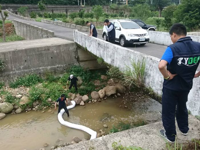 三、 桃園市環保局於5月8日接獲民眾通報牛欄河流域發現有泡沫產生,立即派員至立運特化公司稽查,現場研判該公司因日前失火,導致界面活性劑原料洩漏,部分原料仍殘留廠區排水溝,經大雨沖刷,雨水夾帶泡沫經由廠內雨水溝續流至牛欄河造成污染,已依水污法處罰。環保局指出,該公司接連因管理不善,導致含有界面活性劑之廢水排放,若再有違法排放致影響水體情事,將祭出停工處分,依法嚴懲決不寬貸。