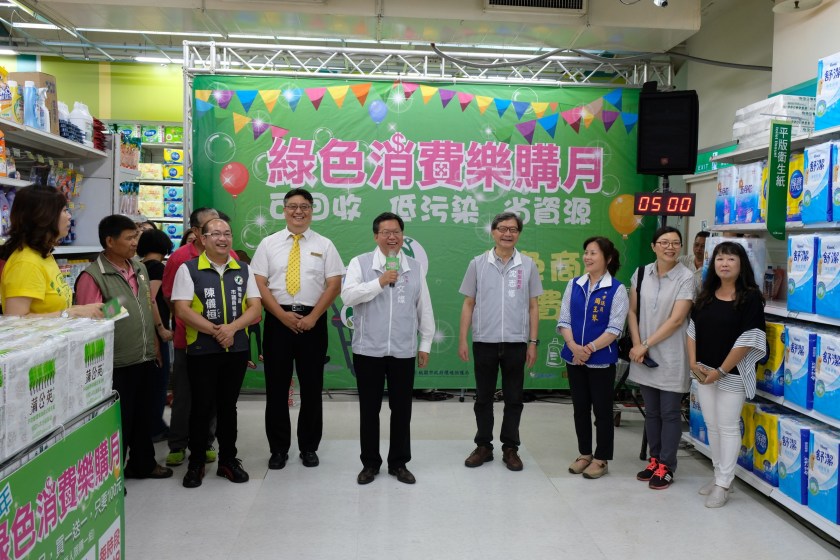 「2018桃園綠色消費樂購月」系列活動頗受好評,26日於愛買楊梅店舉辦第七場;桃園市長鄭文燦也赴現場,向大家宣導綠色消費及環保理念。除了「限量買百送百」特賣會及「綠色商品搬搬樂」外,現場也配合環保署的「環保集點」活動,讓大家以集點來愛護地球,更可以享有優惠。