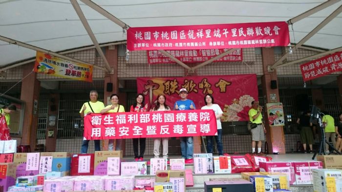 桃園區龍祥里李玲娟里長特別利用端午佳節前的週末,舉辦「端午里民聯歡晚會」,除讓民眾感受端午節團圓與幸福的氣氛外,並結合桃療用藥安全宣導,讓民眾能具備正確用藥知能,提醒大家吃藥時應配適量的溫開水一起服用,吞食後可分數次補充水分,確保藥品進入腸胃道,以使藥品發揮療效。