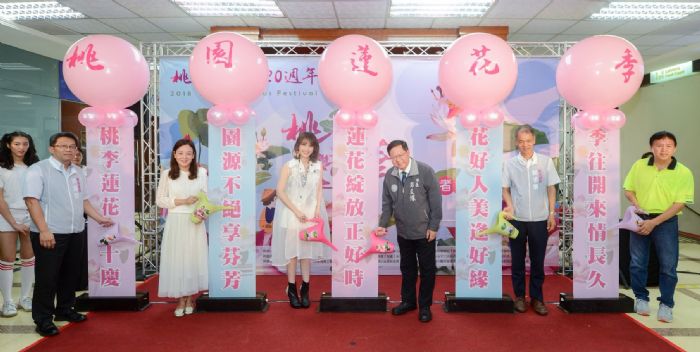 農業局長郭承泉表示,「2018桃園蓮花季-桃李蓮華」將於6月30日至8月12日在觀音蓮花園休閒農業區盛大登場,6月30日在活動主會場將舉辦開幕式,邀請桃園在地舞團-第一位置舞蹈團進行「荷花舞」開場表演,也邀請芙蓉仙子-朱俐靜,與現場朋友一起為2018桃園蓮花季揭開序幕,歡迎市民朋友共襄盛舉,來一場盛夏桃園輕旅行。活動詳情請洽桃園蓮花季官網(http://2018taoyuanlotus.com.tw)或上桃園蓮花季官方粉絲團查詢(https://www.facebook.com/lotus.guanyin/)。包括市府農業局長郭承泉、客家局長蔣絜安、觀音區長洪清淵均一同出席。