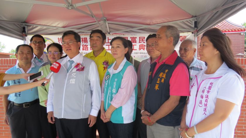 桃園市長鄭文燦28日上午前往楊梅區,出席「楊梅區上湖里富民街143巷等四條道路改善工程典禮」,鄭市長表示,上湖里位於楊梅與新竹縣湖口鄉的交界,有許多大型社區,市府優先改善楊湖路四段92巷、富民街143巷、楊湖路四段554巷、高鐵南路十段502巷等4條道路,全長約2,555公尺,工程總經費約為新台幣1,025萬元,工期約2個月,預計今(107)年8月底前完成,將末梢道路交通維護好,讓楊梅區有更好的生活品質。