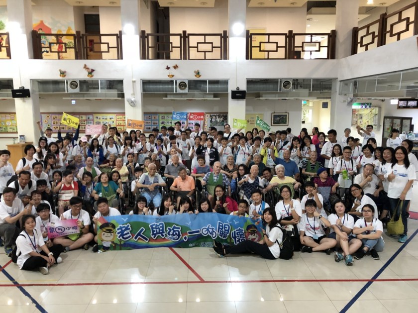 本次活動有別以往,不僅有環境保育的淨灘,還特別安排學生前往「龍潭區怡德老人長期照顧中心」,讓學生們擔任「一日兒孫」陪伴長者,為老人家服務,以及推著輪椅散步聊天,也藉由共同參與接觸傳遞內心的關懷,讓老人家備感溫馨,透過實際參訪,發揮學生的同理心,學習到有別於課堂上的生命教育及價值,把握當下,青春無價。