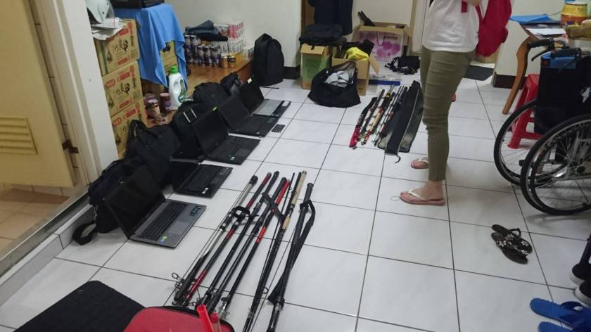 3日下午15時專案人員在該集合式社區大樓樓梯間埋伏等待,約19時許趁著嫌疑人林姓男子(45歲、竊盜前科)開門外出之際,一擁而上將其拘提、逮捕,在屋內查獲筆電、手機、釣竿、包包等大批贓物、安非他命毒品微量、9顆制式子彈,另查獲其友人張嫌(49歲、毒品前科)涉嫌施打海洛因針筒三支,員警循線在台北市濱江街起獲失竊白色休旅車,通知失主領回。