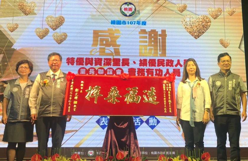 鄭文燦說明,獲獎里長其中有8位同時獲得內政部績優里長,包括:桃園區福安里陳義樹里長,新舊社區經營有道;中壢區華勛里朱夢奇里長,推動天幕廣場和開瓶計畫、裝設無障礙電梯等;平鎮區新富里梁瑞其里長、蘆竹區新莊里王金榮里長、龜山區迴龍里江清萬里長、大溪區美華里蔡水木里長、觀音區藍埔里溫朝增里長、大園區田心里黃興隆里長。另亦頒發18位連續服務滿6屆以上資深里長、15位推動里長聯誼會會務有功人員及13位績優民政人員等,勉勵大家繼續為民服務。