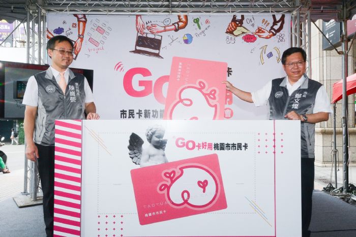 桃園市長鄭文燦18日上午前往桃園遠東百貨,出席桃園市市民卡 「GO卡好用 市民卡新功能‧投票開跑」記者會,鄭市長表示,市民卡涵蓋食、衣、住、行、育、樂等服務,透過今日活動要讓市民卡由市民提案、市民投票,選出最好方案,市府優先採納前7名提案,並加碼獎金,獲勝者分別頒發7萬元、6萬元、5萬元、4萬元、3萬元、2萬元及1萬元獎金,希望持續提升市民卡的功能,增加市民幸福感,成為全台灣最好用的卡。