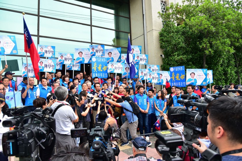陳學聖在副主席曾永權的陪同下完成參選登記作業,見到高舉國旗的支持者,陳學聖興奮高舉登記完成表格,受訪時,陳學聖感謝副主席、立委、中常委、市議員及未來的市議員的全力相挺,陳學聖說,國民黨的團結不是說說而已,此時此刻大家都能感受到國民黨凝聚的士氣,翻轉桃園必須要同心協力,絕對不能分裂。