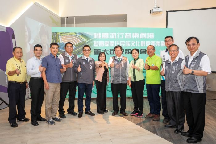 桃園市長鄭文燦31日上午前往大園區桃園航空城願景館,出席「桃園流行音樂劇場暨國際原住民族文化創意產業園區重大建設說明會」,鄭市長表示,市府規劃於機場捷運A17站的橫峰里,設置桃園流行音樂劇場及國際原住民族文化創意產業園區,該基地面積約4公頃,總計畫經費約40億元,由市府新建工程處代辦,完工後將有戶外及室內空間,可分別舉辦展覽、演唱會及慶典等大小型活動;原住民族電視台也會遷入國際原住民族文化創意產業園區,吸引更多影像專業人才進駐。市府會持續推動青埔地區建設,帶動青埔地區發展。