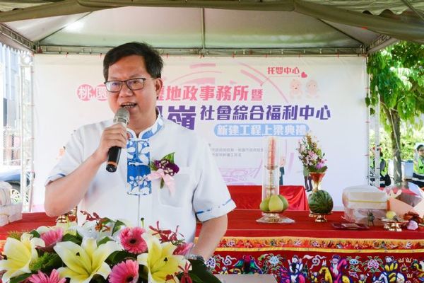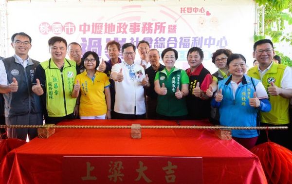 桃園市長鄭文燦14日上午前往中壢過嶺地區,出席「中壢地政事務所暨過嶺社會綜合福利中心新建工程上梁典禮」,鄭市長表示,該工程於去(106)年9月動工,採左右分開的雙拼設計,左側為中壢地政事務所、右側為過嶺社會綜合福利中心,工程及內裝設備等經費約5億5,000萬元,預定明(108)年7月完工,成為過嶺地區的新地標。