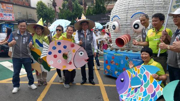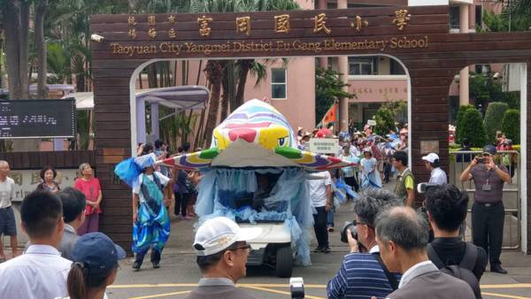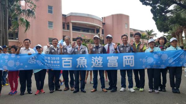 桃園市長鄭文燦15日中午前往富岡國小活動中心,出席「2018桃園地景藝術節:主題活動-百魚遊富岡/魚兒回娘家」,鄭市長表示,「百魚遊富岡」活動是由三條大魚領軍、數百條社區製作的小魚隨行的遊行活動,三條大魚邀請八德區竹霄社區發展協會、新屋區愛鄉協會、觀音區廣福發展協會等歷年地景藝術節舉辦地的社區協會,以及展區里民與富岡國小師生,用環保材質製作「好彩桃章魚哥」、「莎莎公主」、「幸福鰱鰱」等三條色彩繽紛的大魚,共同魚游老街區,落實「地方覺醒」、「社區風動」、「藝術打樁」等三大地景藝術節主軸。