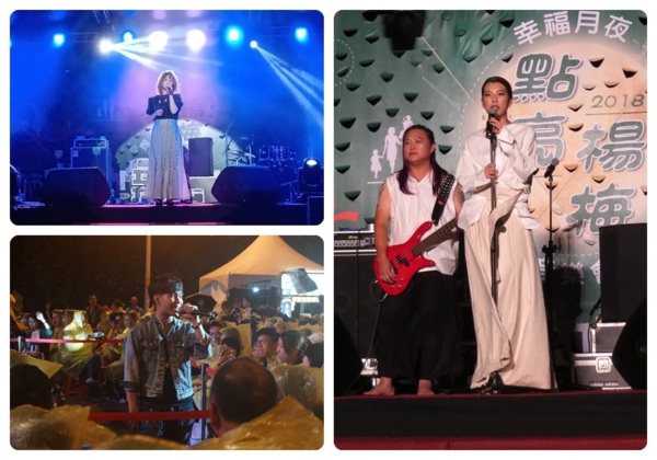 晚會活動由治平高中及楊梅高中的學生打頭陣,展現楊梅的青春活力,接著人氣女聲-郭靜、新生代歌手-莎莎、客家偶像-許仁杰,還有金曲超人氣台式搖滾樂團-茄子蛋輪番上陣熱力開唱。郭靜演出多首動聽的代表作品,身為客家人的許仁杰演唱客家歌曲,楊梅擁有多數客家族群,聽到熟悉的語言觀眾也跟著哼唱,莎莎則以搖滾樂團演出熱力十足的動感歌曲。茄子蛋今年甫獲得金曲獎,人氣爆紅,楊梅區公所特別爭取在中秋佳節邀請到楊梅演出,壓軸登場獻唱浪子回頭等當紅歌曲,將現場氣氛引爆沸騰。
