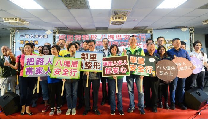 鄭市長表示,在交通運輸方面,目前八德區有往來新北土城的1659國道客運,市府將於10月1日起改制為市區公車,並納入市區公車持市民卡搭乘享買一送一優惠方案;目前八德區YouBike租賃站總計16站,將持續往25站的目標邁進,同時以提供YouBike租賃站命名權的誘因,吸引建商增設YouBike租賃站。在交通安全方面,推行人本交通及微整形計畫,透過設置綠線標線型人行道及交通桿,讓行人更安全;市府也與交通部合作舉辦「黃帽戴起來,SAFE跟著來」交通安全宣導活動,提倡學童穿越道路時戴黃色小帽,提醒來往車輛注意行人,維護學童自身安全。