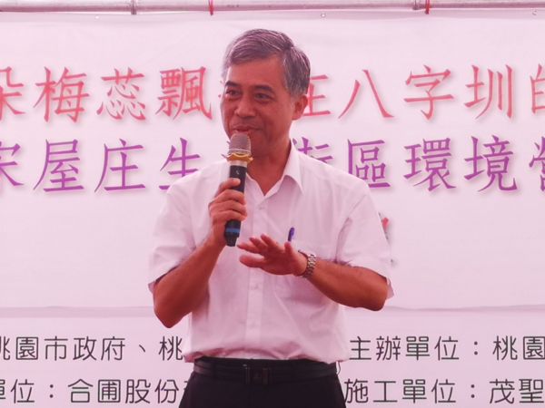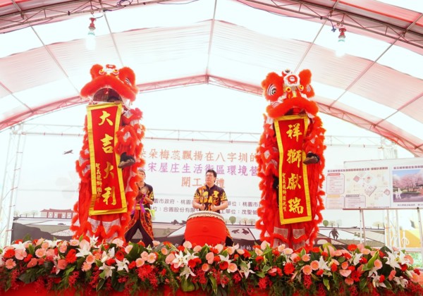 為推動「國家級臺三線客庄浪漫大道計畫」,桃園市政府客家事務局20日在平鎮區廣仁公園辦理「讓朵朵梅蕊飄揚在八字圳的天空-臺三線宋屋庄生活街區環境營造工程」開工典禮,邀請居民共同見證平鎮區廣仁里八字圳的歷史風華再現。透過本計畫進行整體規劃,結合宋屋庄「梅」的意象,串聯宋屋國小、地方耆老、街角博物館及當地人文歷史,期待未來能復刻八字圳與宋屋庄的生活風貌,讓桃園平鎮區的浪漫由此展開。