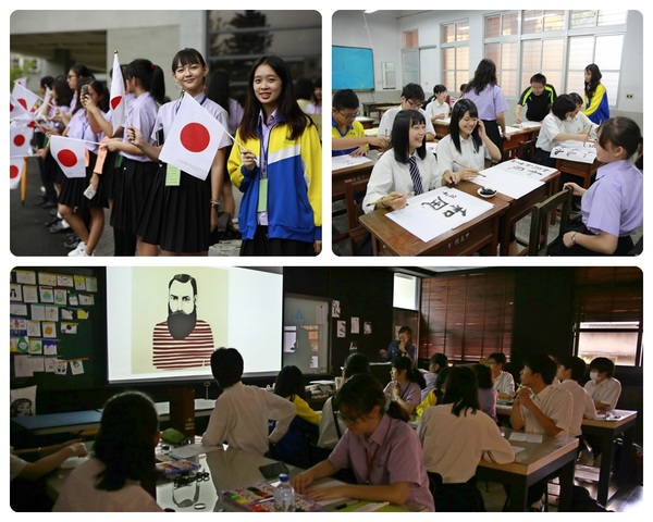游文聰校長表示為落實文化交流,桃高學務處邀請校內老師各顯所長。戴慧玲、林文淑老師結合高一多元選修課程「飲食與文化」讓日本同學體驗台灣獨有的「洗愛玉」活動及美味的珍珠奶茶;擁有餐飲丙級證照的申士芳老師則帶領同學現場烹製香氣四溢的鹽酥雞、蔥油餅。品嘗美食之餘,還有豐富的文化饗宴,適逢虎頭山孔廟祭孔大典在即,闕世榴老師率領台日同學躬逢其盛體驗祭孔儀式;國文科陳宏宜老師讓來訪同學一邊品茗一邊寫書法,感受台灣特有的「茶道」及「書道」。