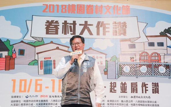 桃園市長鄭文燦4日上午在文化局長邱莊秀美、中壢區長吳宏國陪同下前往文化局,出席「2018桃園眷村文化節宣告記者會」,鄭市長表示,2018桃園眷村文化節今(107)年舉辦第18屆,結合傳統和創新、社區和家庭,以「我村‧我家」為主題,期望找回家的生活型態和過去眷村濃厚緊密的情感,展現眷村刻苦耐勞的精神。活動自10月6日至10月14日,以「眷村大作『讚』」為主軸,由8大眷村社區舉辦系列活動,包括:中壢區自立國宅的升旗、踩街活動;龍潭區上華里的童玩競技;大溪區仁義里的「旗仁義飾之旗海飄揚」;憲光二村的「村民大作讚」;八德區陸光社區的「眷村媽媽」活動;大溪區的「僑愛永世讚」;龍潭區的「回嗔作喜話孤軍」,展現雲南美食和文化;龜山區有群星會、眷村文化夜等;文化局也舉辦藝術家市集、「憲光昨日今時」專題特展、照片展、眷村開唱、管弦樂團演出、蚊子電影院、文史互動作品等,活動相當精采。眷村文化節是開放市民參與的活動,歡迎各位市民朋友踴躍參加。