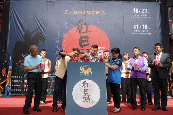 桃園市政府客家事務局與財團法人桃園市客家文化基金會5日舉辦「1895乙未戰爭客家首部曲—紅日頭」記者會,宣布桃園首度製作的大型客家戲劇公演,即日起開放索票!