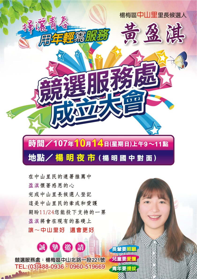 中山里長候選人黃盈淇 揮灑青春用年輕寫服務 2018-10-08 yehyeh177363 未分類 發表留言 分享此文: 按一下即可分享至 X(在新視窗中開啟) X 按一下以分享至 Facebook(在新視窗中開啟) Facebook 喜歡 正在載入... 相關