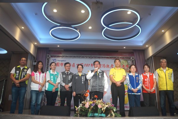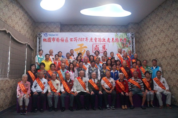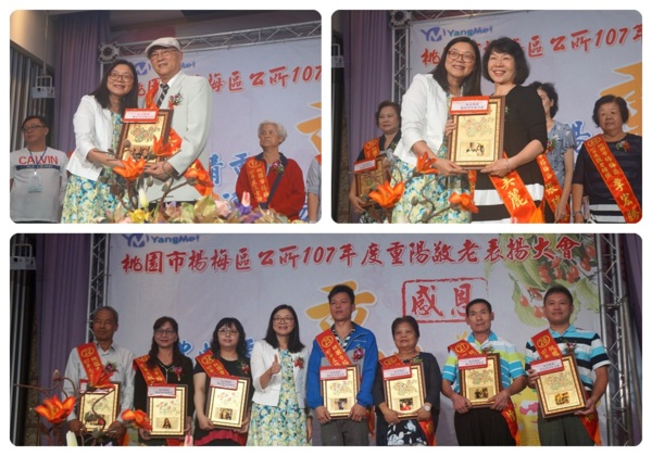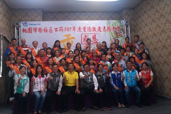 楊梅區公所10月9日上午在楊梅區幸福鹿時尚美食館舉辦「107年度長青楷模及重陽敬老表揚大會」,表揚各里推薦的長青及敬老楷模代表等82人。每位受表揚代表在家人陪同下,接受各界祝福,整個會場在竹儀舞蹈團及魔術表演的歡樂氣氛中溫馨登場。立法委員陳賴素美、市議員周玉琴、李家興、張火爐、楊梅區姚敦明區長、里長聯誼會會長黃朱秀娥、前市長彭聖富、立委陳賴素美秘書陳儀桓、立委吳志揚秘書涂權吉、市議員張火爐秘書鄭淑方,當地及鄰近里長皆到場參與,場面熱鬧溫馨。