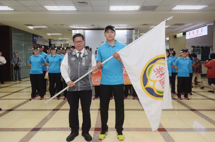 桃園市長鄭文燦11日上午在消防局長謝呂泉陪同下於市府,出席「107年全國消防暨義勇消防人員競技大賽選手授旗儀式」時表示,競技大賽是平時消防訓練及教育成果的展現,今(107)年的全國消防暨義勇消防人員競技大賽分為消防人員競賽組及義消組,各有3個及4個競賽項目,期勉消防及義消同仁全力以赴,奪得佳績;市府會持續推動消防革新,提供消防及義消同仁更多的支持。