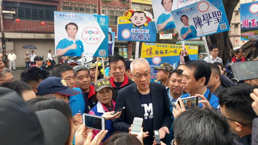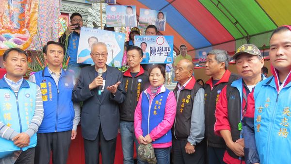 國民黨黨主席吳敦義上午前往桃園楊梅地區為黨提名的市長候選人陳學聖、市議員周玉琴、市議員候選人涂權吉及里長候選人黃榮龍等站台拉票,錫福宮主委鄭石榔與常務監察委員傅標榮出面親自接待,現場擁入大批支持鄉親。首先進入鍚福宮膜拜,祁求國泰平安、風調雨順,繼而步入廣場與民衆寒喧致意,再與候選人站台,一一高喊每位候選人凍選,台下民衆也高聲附喝。會後吳敦義也前往涂權吉競選總部助陣。