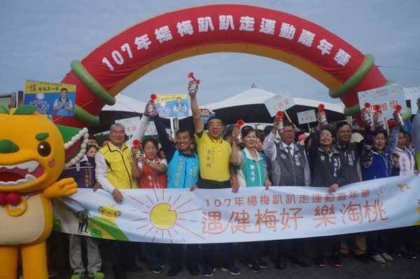 楊梅區公所10月14日於勞動部勞動力發展署桃竹苗分署秀才路對面廣場盛大舉辦「107年楊梅趴趴走運動嘉年華活動」,桃園市鄭文燦市長今日上午也出席活動為民眾們加油打氣,為此次健走活動展開序幕。桃園市鄭文燦市長表示,楊梅地區的運動風氣豐盛,為了使市民能有更好的運動空間,除了建設各公園的天幕設施,最重要的是今年底前即將動工的楊梅體育園區及展演中心,讓未來大型活動能舉辦在楊梅,使楊梅成為未來南桃園最優質生活圈之一,期盼民眾能藉由活動展現出活力,祝福大家越走越快樂、健康。
