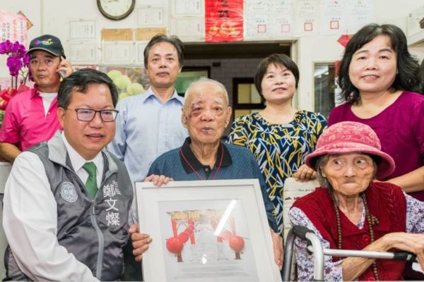 桃園市長鄭文燦16日上午前往中壢區水尾里,親訪百歲人瑞韓寳順先生,鄭市長表示,韓伯伯很健康、也很開朗,一個良好的社會要建立照顧長輩、尊重長輩的環境,桃園會扮演全台老人福利的模範,繼續往前邁進。
