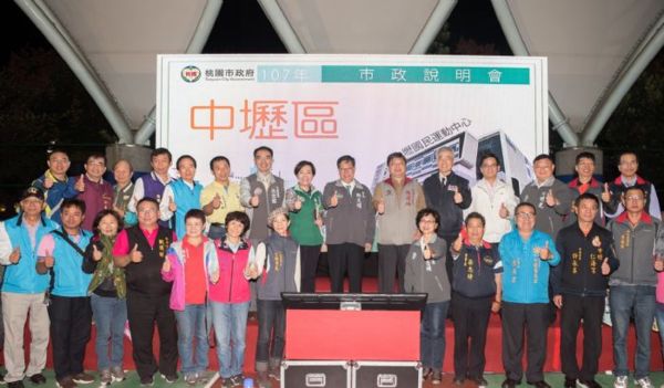 桃園市長鄭文燦19日晚間前往中壢區文化公園天幕球場,出席「中壢區市政說明會」,鄭市長表示,中壢正在改變與進步,市府在中壢投入許多建設,除了亞洲‧矽谷計畫、鐵路地下化、捷運計畫,中壢共有75項工程,中央與地方共核定600億元。他說,大建設要有眼光、魄力及執行決心,也要中央與議會支持,小建設則要貼心、好用及市民有感。「千里之行,始於足下」,任何事情都要開工,才能完工,將持續以高標準建設中壢,促進中壢轉型。