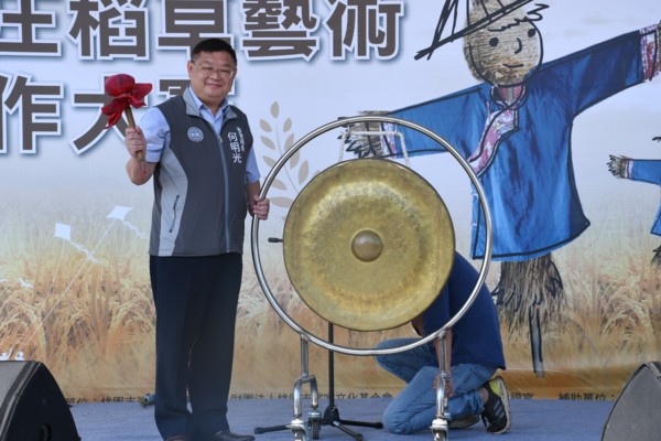 桃園市政府客家事務局長何明光鳴鑼,宣布比賽正式開始