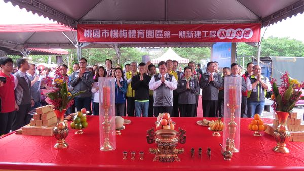 桃園市長鄭文燦23日下午前往楊梅區中山北路二段,出席「楊梅體育園區新建工程開工典禮」時表示,楊梅體育園區開發計畫推動了40年,在市府的努力、議會的支持及中央的補助下順利開工,今日辦理第一期工程開工,開發面積約4.56公頃,總經費約30億7,000萬元(含工程費約18億7,000萬元、用地費約12億元),並獲得中央補助經費約6億元,將設置國家跆拳道訓練中心、多功能運動暨展演中心及跆拳道訓練宿舍等3項設施,預計於110年底完工。市府也會接續完成新楊梅行政中心及楊梅水資源回收中心等建設,讓楊梅脫胎換骨,揚眉吐氣。