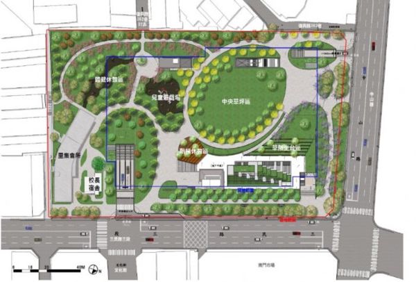另基地一隅為桃園高中時代留下的校長宿舍,市府將修復後再利用,提供桃園市政府勞動局作為庇護工場,未來可提供咖啡點心等,成為公園中的特色建築;完工後提供周遭地區汽車停車位345席,機車停車位615席,可有效紓解至南門市場採買民眾的停車需求;基地內有許多生長良好的大樹(榕樹、茄苳等),具有觀賞及生態的價值,本工程儘量原地保留開挖範圍以外的大樹(63株),需移植的大樹(43株)則暫時假植於基地內空地,待公園覆土完成後再移植回公園規劃位置,使公園啟用時就有能有大樹成蔭。