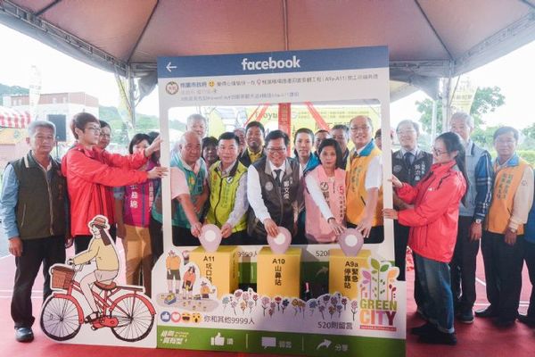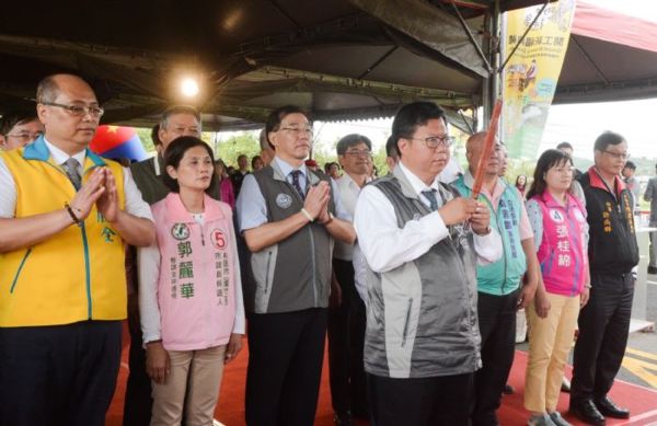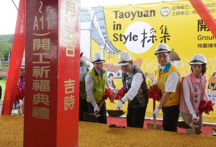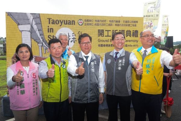 桃園市長鄭文燦(5)日上午前往蘆竹區山外路,出席「機捷田園景觀大道 (A9a至A11)道路改善工程開工典禮」,鄭市長表示,機捷田園景觀大道全長約5.4公里,寬度21公尺,沿線行經A9a(緊急停靠站)、A10山鼻站和A11坑口站,橫跨坑口里、山腳里、外社里、山鼻里、坑子里等5個里,獲得前瞻基礎建設計畫補助2億元經費,市府投入2億4,000萬元經費,總經費約4億4,000萬元,將於道路兩旁規劃不同設計,一邊為車道,另一邊施作自行車道和林蔭步道,兼具防災功能,預計109年4月完工。