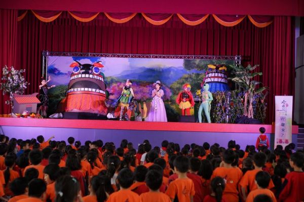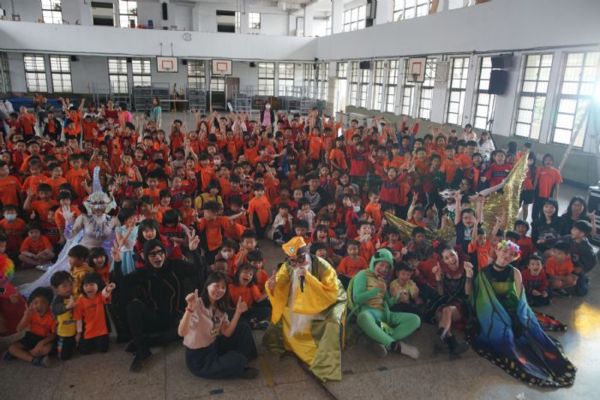 桃園市政府客家事務局今年透過「客家音樂展演徵件計畫」徵選出13組優質團隊,前往全市44校進行巡演。入選團隊之一─哈旗鼓文化藝術團(9)日前進中壢國小演出,以早期客庄的石獅公傳說為基礎、龍潭的乳姑山作為故事背景,編寫「吖龍來了」兒童劇,描述精靈、石獅公和風龍、水龍爭鬥的過程,希望藉由演出傳達環境保育、愛護大自然的觀念。