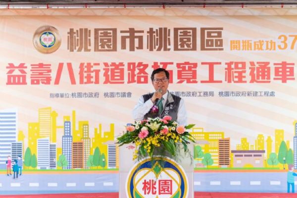 桃園市長鄭文燦12日上午前往桃園區,出席「桃園區益壽八街道路拓寬工程通車典禮」,鄭市長表示,為讓位於延壽街、中山路、國際路間的社區道路暢通,市府規劃益壽七街打通工程、益壽八街拓寬工程及新闢延壽街97巷連接至益壽八街道路等3項工程。雖面對經費與用地協調的挑戰,但益壽七街打通工程已於去(106)年完成;益壽八街則與地主協調以容積移轉方式捐贈土地,大幅降低用地取得費用,完成長145公尺、寬12公尺的雙線2車道路段,總工程經費700萬元,於今日正式通車啟用;而新闢延壽街97巷連接至益壽八街道路工程也將採容積移轉方式,預計明(108)年春節後動工,期盼透過3條道路的打通,讓當地社區道路更完整、通行更方便。