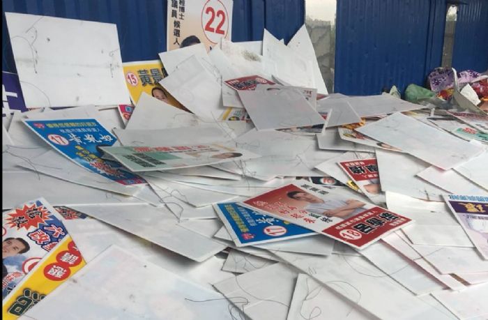 環保局長沈志修指出,雖然這次選舉作業已投入許多清潔隊員協助選務工作,但為了儘速恢復市容景觀,清潔稽查大隊仍於星期天加班動員了380多人,出動133部車輛,將各個候選人未自行拆除的看板、旗幟及布條等一一拆除。截至11月25日下午2時,已完成全市各區重要道路選舉宣傳旗幟和廣告物的清除工作,總計拆除4萬多件各類競選廣告物,趕在星期一民眾上班前恢復市容環境。另外,針對拆除下來的廢棄選舉廣告物,例如pp板跟旗幟等,因具有高熱值特性,將全數回收並交由專業廠商經破碎、加熱壓製等處理方式做成固態燃料棒,後續可作為輔助燃料,不僅達到資源再利用,也可減少垃圾量。