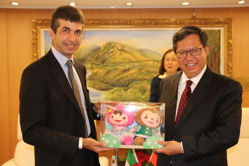 義大利經濟貿易文化辦事處蕭國君代表(Donato Scioscioli)任期屆滿,離臺前拜訪鄭文燦市長,也承諾義大利和桃園的交流不會中斷,將持續延續下去。熱愛棒球的蕭國君代表,接連2年受邀參加桃園邀大使看棒球的盛宴,對桃園留下深刻印象。蕭國君代表當面向鄭文燦市長連任表達恭賀,他說,勝選代表獲得選民認同,接下來與桃園交流事宜也已經向繼任者交接,雙方交流不會因此中斷。