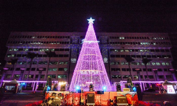 桃園市府前廣場12月12日起至24日耶誕燈飾點燈,每日晚間17:30開始閃耀綻放。桃園市長鄭文燦107年12月17日(一)晚間參與點燈儀式,今年以「2018 TAOYUAN CITY幸福天光」為主題,邀請由桃園少年之家執行長張進益牧師帶領的大改樂團演唱「陪你走下去」、「平安夜」、「叮叮噹叮叮噹」、「夢想之翼」聖誕節組曲,點燃桃園市民心中溫暖光火。