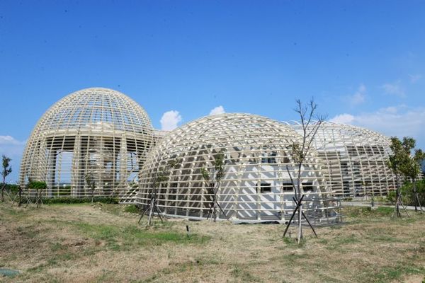 進入園區,馬上會注意到圓弧鋼構的管理大樓;走在造型特殊的建築裡,陽光將影子灑下鋼構,虛實交錯的空間感頗為迷人。在亮與暗的層次間,登上生態教育館的頂樓,可見雨水回收系統、砂地植物、生態水池及綠化植栽,正是一幅綠意與科技結合的景象。「人類向大自然借了乾淨的水來用,就該把乾淨的水還給大自然。這中間的處理環節,是我們的任務所在,也包含了本中心的環境理念」,桃園北區水資源回收中心環教人員李雲荇說。